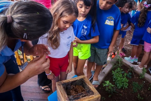 O jardim é um convite ao contato com a biodiversidade local e oferece uma experiência única para os estudantes. O local conta com decks, bancos, flores, Plantas Alimentícias Não Convencionais (PANCs) e colmeias de abelhas sem ferrão, todos componentes que não apenas embelezam o ambiente, mas também servem para ensinar sobre a importância dos polinizadores para o equilíbrio ecológico e a preservação ambiental. A presença das abelhas, em particular, é uma oportunidade para aprofundar o conhecimento sobre o papel crucial desses insetos na manutenção da vida no planeta.