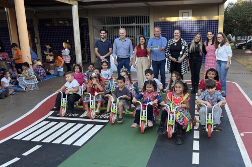 Em meio à programação da festa julina da Escola Municipal Waldyr Luiz Becker, no Jardim Facchini, um novo espaço voltado à educação para o trânsito foi oficialmente entregue na tarde da última sexta-feira (25). Trata-se de uma pista pedagógica de 60 metros quadrados (12 metros de comprimento e 5 metros de largura), instalada no pátio da instituição, que permitirá às crianças aprender, na prática e de forma lúdica, conceitos fundamentais sobre circulação segura, respeito à sinalização e empatia no convívio urbano.