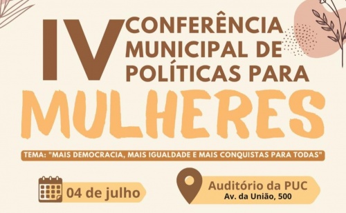 A IV Conferência Municipal de Políticas para Mulheres está mais próxima do que nunca! O evento será realizado na sexta-feira (04 de julho), das 08h00 às 12h00 e das 13h30 às 17h00, no Auditório da Pontifícia Universidade Católica do Paraná (PUC-PR), Campus Toledo. Essa edição conta com um tema especial: “Mais democracia, mais igualdade e mais conquistas para todas”, além de abordar três eixos: a política nacional para as mulheres, o sistema nacional de políticas para mulheres e as políticas públicas temáticas para as mulheres.