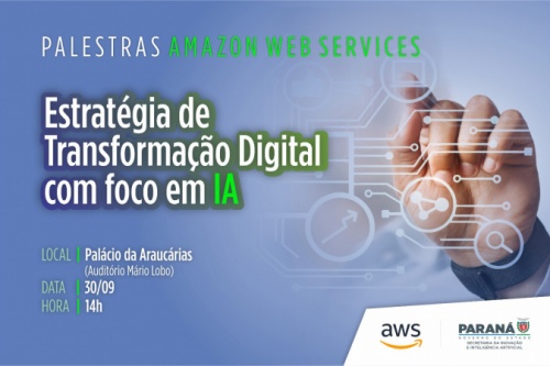 Na próxima terça-feira (30), o Governo do Estado, por meio da Secretaria da Inovação e Inteligência Artificial (SEIA), realiza uma série de palestras em parceria com a Amazon Web Services (AWS) para capacitar servidores públicos em transformação digital e inteligência artificial.