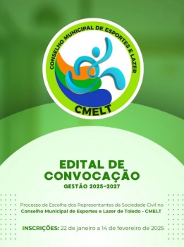 Nesta quarta-feira (22) a Secretaria de Esportes e Lazer, por meio do edital de convocação de entidades, declarou aberta as inscrições para representantes da Sociedade Civil no Conselho Municipal de Esportes e Lazer de Toledo (CMELT), para a gestão compreendida entre 2025-2027.