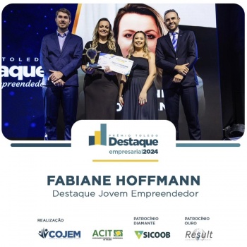 O 2° Prêmio Toledo Destaque Jovem Empreendedor reconheceu Fabiane Hoffmann, sócia-proprietária da I.Pro Gestão e Treinamentos, como a grande vencedora da edição deste ano. O processo de seleção foi conduzido por uma comissão formada por membros do Conselho do Jovem Empreendedor (Cojem), da Pontifícia Universidade Católica (PUC-PR) e do Serviço de Apoio às Micro e Pequenas Empresas (Sebrae-PR), que avaliaram os candidatos com base em critérios previstos no regulamento.