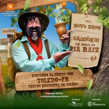 Prepare-se para uma noite de muito humor com Gaudêncio, o personagem icônico do comediante Cris Pereira, que desembarca em Toledo para uma apresentação imperdível no Teatro Municipal! No dia 16 de junho, a partir das 18h30, os portões se abrirão para receber o público que deseja se divertir com o humor autêntico e irreverente de Gaudêncio. O show, com início previsto para às 19h00, promete levar todos à gargalhada com a energia contagiante do personagem mais bagual do Brasil.