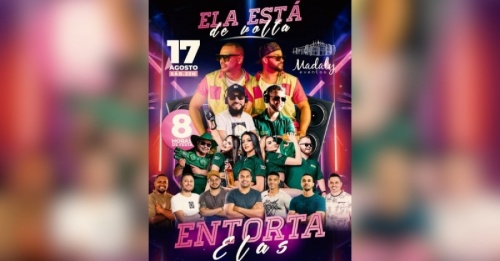 Faltam apenas duas semanas para o “Entorta Elas”, um evento imperdível que será realizado no dia 17 de agosto no Madaly Eventos, em Toledo. Garanta já o seu ingresso e prepare-se para uma noite incrível de música e diversão com muita energia positiva!
