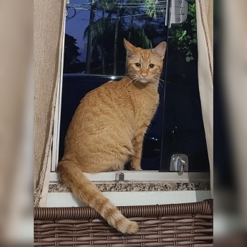 O animal tem pelagem laranja, é castrado e possui um ano de idade.
