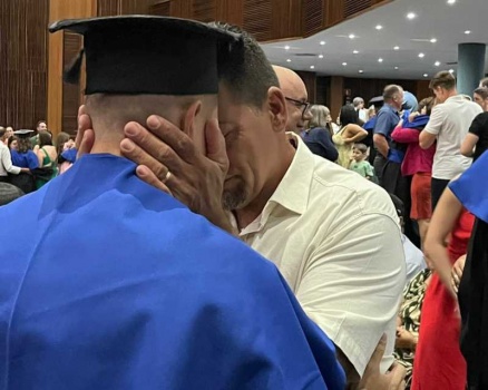 Quase no final da cerimônia, já com o certificado em mãos, os novos profissionais desceram do palco e foram até o auditório, para homenagear os familiares e amigos que prestigiaram a colação.