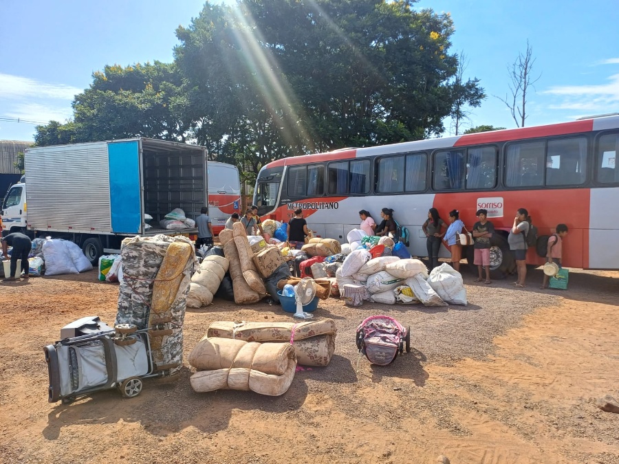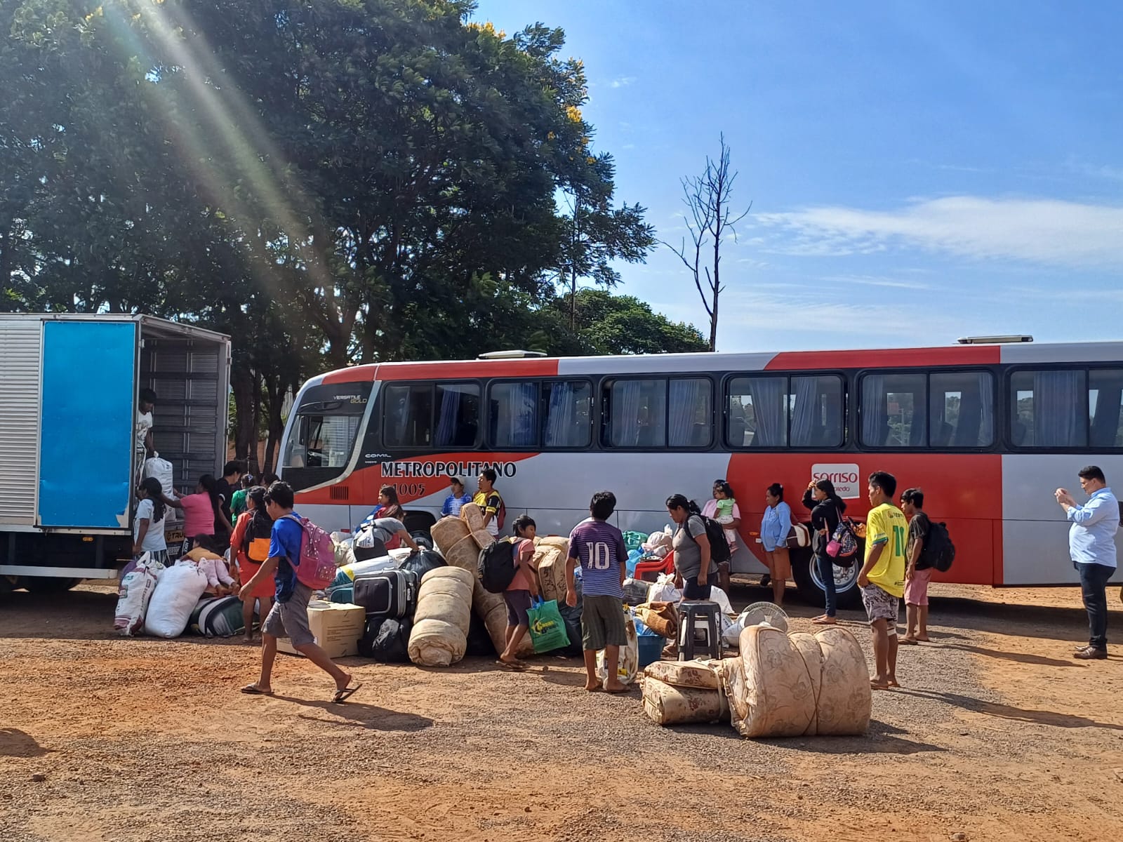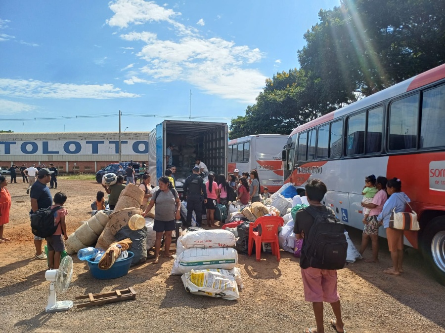 Famílias indígenas são transportadas de volta à aldeia em Nova Laranjeiras