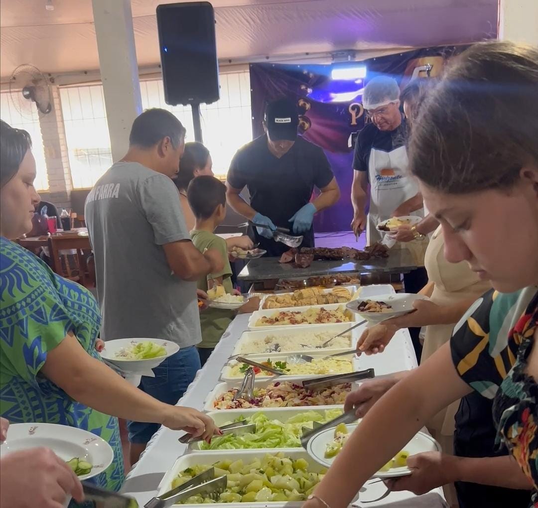 O almoço festivo, com churrasco de gado e porco, além de acompanhamentos preparados voluntariamente, foi um dos pontos altos do dia. O cardápio foi totalmente produzido a partir de doações da comunidade, reforçando o espírito coletivo que marca a paróquia. Segundo José Alberto Schneider, presidente da Equipe Executiva da Paróquia, o evento é carregado de tradição. “Nossa festa é realizada sempre no final de novembro, perto do dia de Nossa Senhora das Graças. Já são pelo menos 40 anos mantendo essa tradição”, relatou.