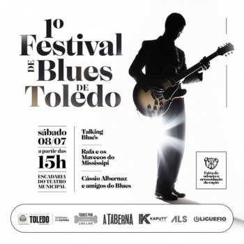 No próximo sábado, dia 08 de julho, ocorrerá o 01° Festival de Blues de Toledo, um evento cultural e beneficente que promete movimentar as escadarias do Teatro Municipal, a partir das 15h00.
