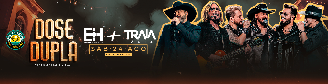 Festival Dose Dupla: Edson & Hudson e Traia Véia prometem agitar o Píer Santa Maria de Toledo neste sábado! Garanta o seu ingresso aqui