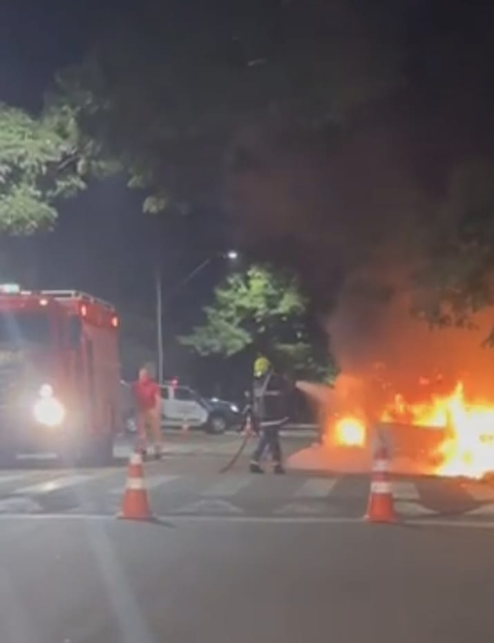 Fogo destrói veículo estacionado nas proximidades do Centro de Eventos da Vila Pioneiro