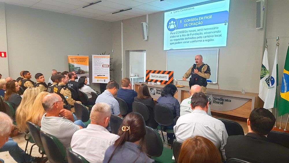 O Sindicato Rural de Toledo foi anfitrião do Encontro Regional de Segurança Rural, realizado nesta terça-feira, dia 28, quando estiveram em pauta temas como trânsito de máquinas agrícolas, prevenção de incêndios e, principalmente o papel estratégico de atuação dos Conselhos de Segurança Rural e a integração dos produtores rurais com as forças de segurança.