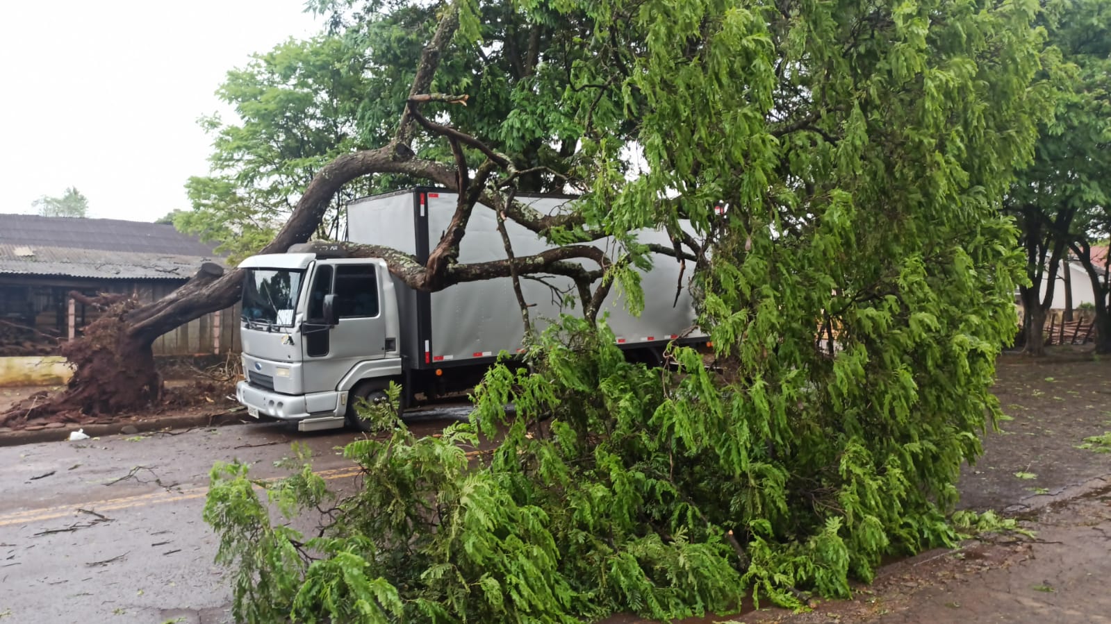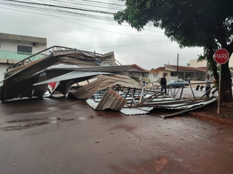 A cena mais impactante foi no Supermercado Allmayer, onde a fachada caiu em cima de alguns veículos que estavam no estacionamento. Na unidade industrial da cooperativa Copagril também houve destelhamentos e alguns estragos.