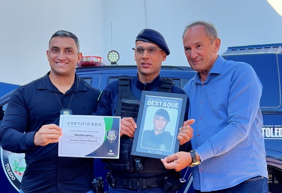 A Secretaria de Segurança e Trânsito de Toledo prestou, nesta sexta-feira (26), um reconhecimento público ao guarda municipal Fernando Gomes Bertapelli, em homenagem à sua trajetória de quase 16 anos de serviços prestados à Corporação. Ele foi eleito como Guarda Municipal do Mês. O elogio individual foi formalizado por meio de ato oficial, assinado pelo secretário Rogério de Lima, que destacou a conduta ética, o comprometimento e a liderança do servidor.