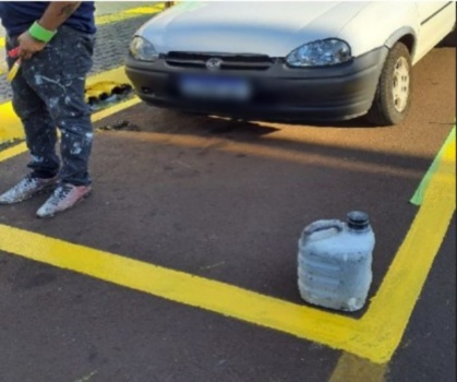 Na manhã da última quarta-feira, 23, por volta das 07h00, uma equipe da Guarda Municipal (GM) foi acionada para verificar uma situação de sinalização irregular na Avenida Senador Attílio Fontana, próximo ao cruzamento com a Avenida Maripá, em frente a um estabelecimento comercial. Ao chegar ao local, os agentes constataram que uma pessoa contratada pelo estabelecimento estava realizando, sem autorização, a pintura de uma faixa de delimitação de entrada e saída de veículos.