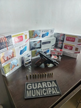 Uma arma de fogo, munições e cigarros contrabandeados foram apreendidos pela Guarda Municipal (GM) de Toledo na manhã de sábado, 03, após uma denúncia de ameaça no Centro da cidade.