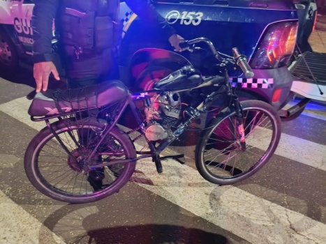 Por volta das 20h30, da última quinta-feira, 14, durante patrulhamento pela Rua Tomaz de Aquino, na Vila Pioneiro, uma equipe da Guarda Municipal (GM) flagrou uma bicicleta motorizada circulando sem escapamento, provocando ruído excessivo.