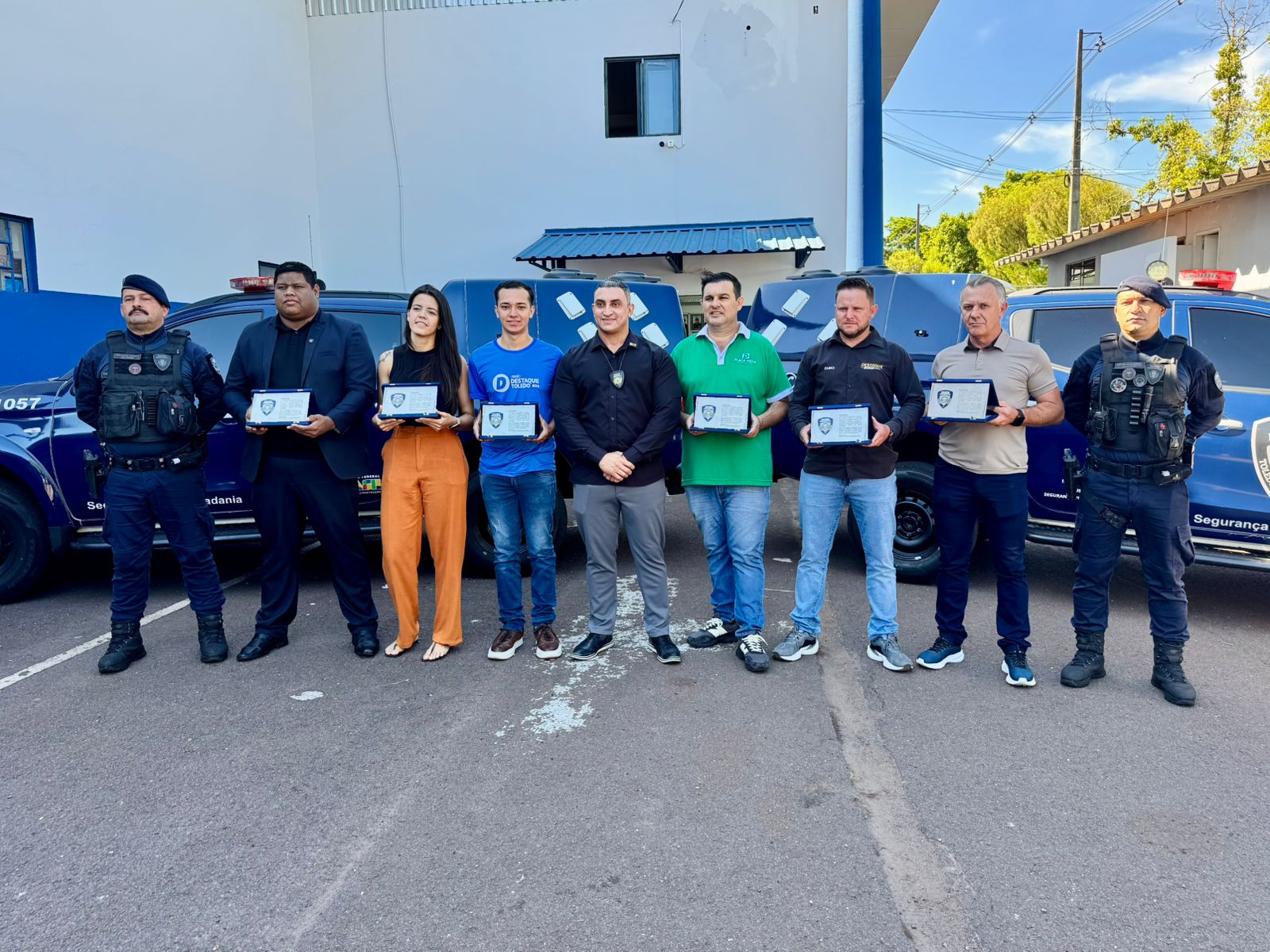 Empresários locais, representantes da imprensa e instituições parceiras que apoiam ações da Guarda Municipal também receberam homenagens, em reconhecimento à contribuição para o fortalecimento das políticas públicas de segurança.