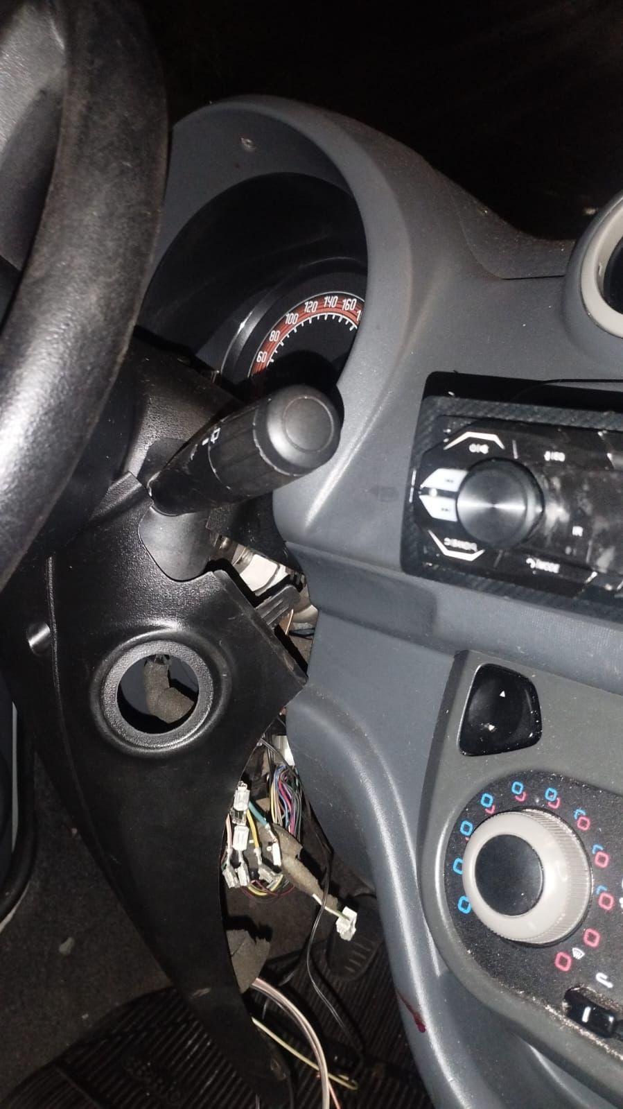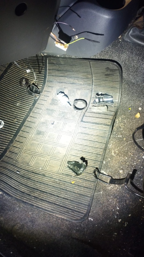 Ao realizar a vistoria no interior do carro, os agentes constataram que as portas estavam destravadas, o miolo da ignição havia sido arrancado, o rádio estava parcialmente removido e a fiação do painel apresentava sinais de tentativa de ligação direta, indicando uma possível tentativa de furto.
