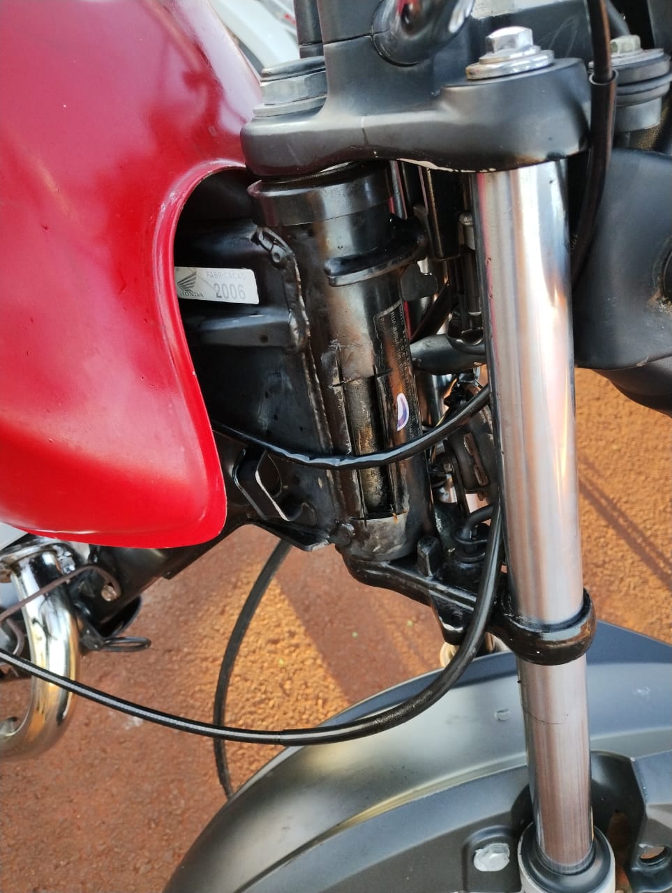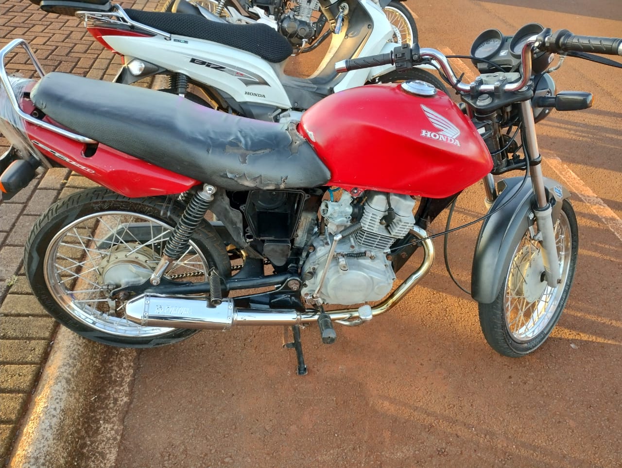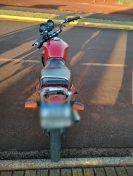 Ao chegar ao parque, os agentes encontraram duas motocicletas estacionadas. Uma delas, de cor vermelha, chamou a atenção das autoridades. Após consulta ao sistema, foi constatado que a cor do veículo não correspondia à registrada oficialmente, além de diversas irregularidades visíveis: ausência de retrovisores, sinaleira traseira quebrada e o chassi cortado, o que levanta suspeitas sobre a procedência do veículo.