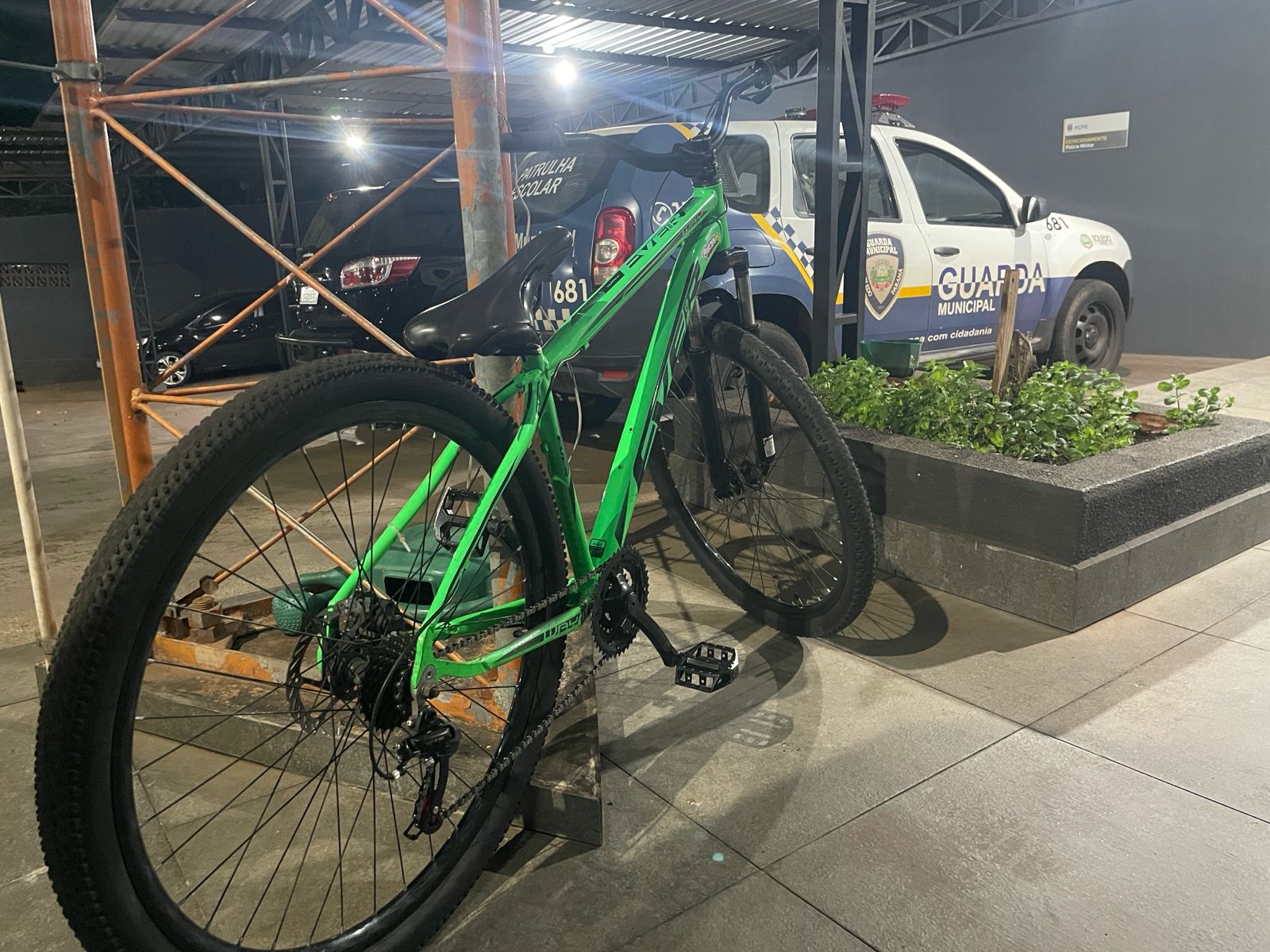 A Guarda Municipal (GM) de Toledo recuperou na tarde de terça-feira, 23, uma bicicleta furtada nas proximidades de uma empresa de odontologia, na região central da cidade. O suspeito do furto, um homem usando camiseta regata preta e shorts jeans azul, foi visto por volta das 14h00 na posse da bicicleta, de cor verde.