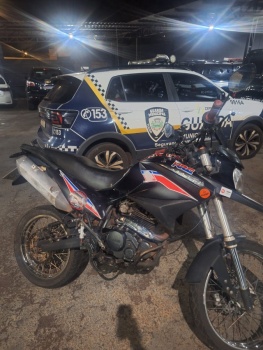 Uma equipe foi enviada ao local e, após consulta ao sistema, constatou que a motocicleta da marca Shineray, modelo XY 250, possuía registro de furto e roubo. Diante da confirmação, o veículo foi apreendido e encaminhado à 20ª Subdivisão Policial de Toledo (20ª SDP), onde foram adotadas as providências legais.