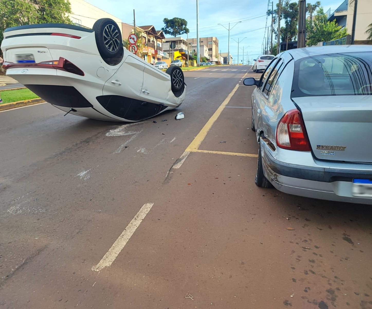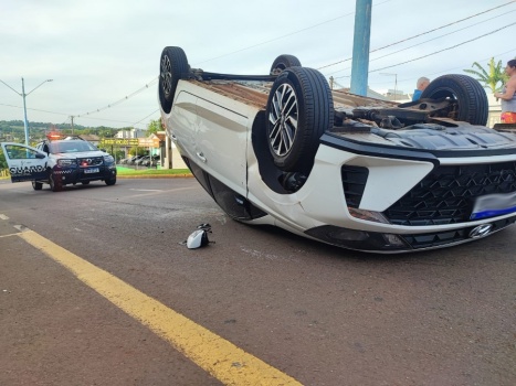 HB20 capota após colidir com Clio estacionado na Attílio Fontana