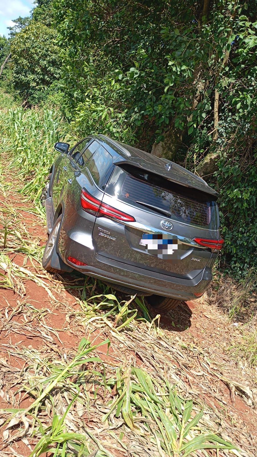 A ocorrência foi registrada por volta das 13h25 na rodovia PR-317, cerca de 500 metros antes do trevo de acesso a uma indústria frigorífica, no trecho entre Toledo e Assis Chateaubriand-PR. Após localizar e recuperar a Hilux furtada, os policiais avistaram um Chevrolet Onix em atitude suspeita trafegando por uma estrada sem saída, nas proximidades do local da recuperação do veículo.