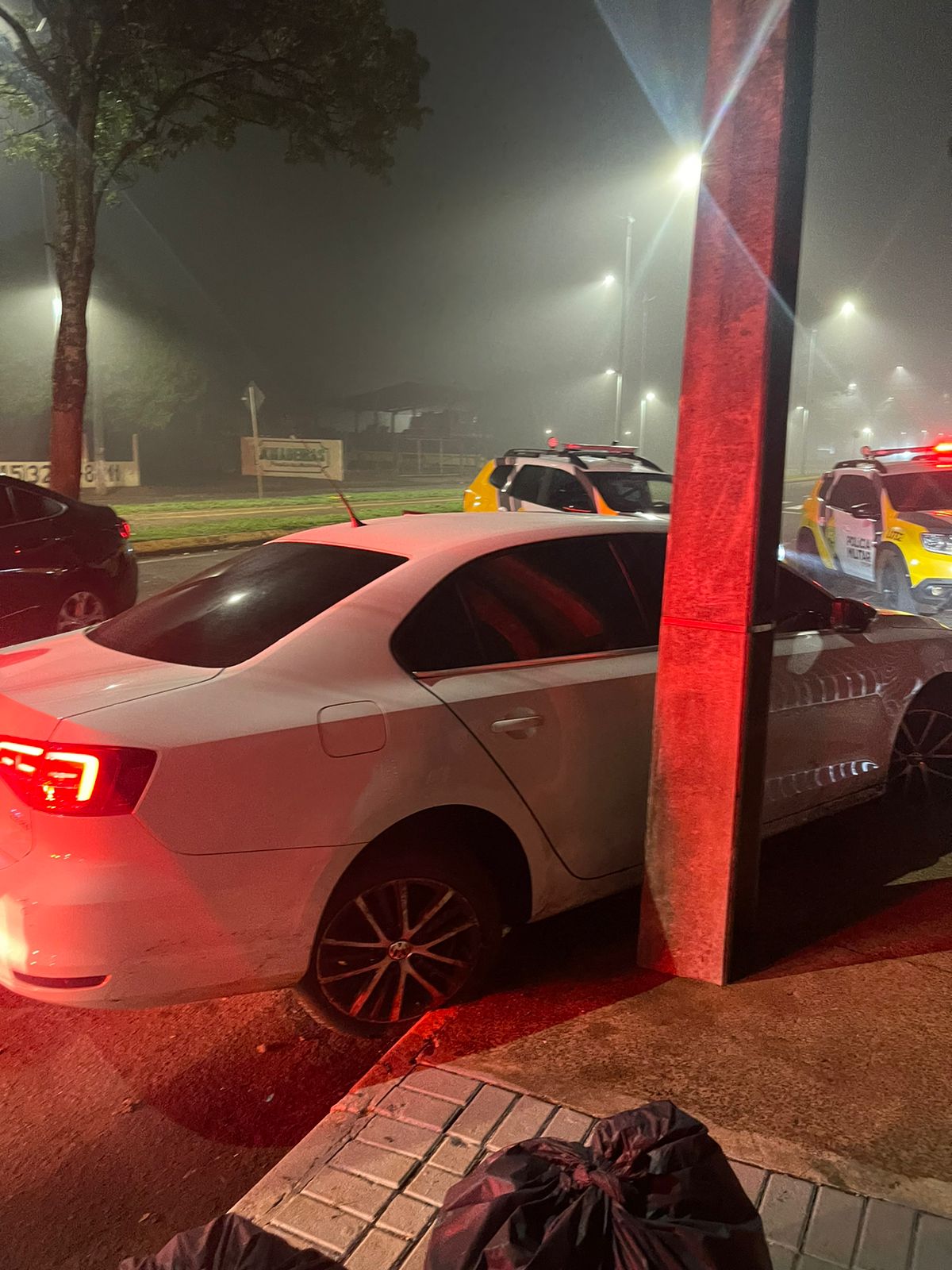 A fuga só cessou quando o homem perdeu o controle do carro e colidiu contra um meio-fio, na rotatória da Avenida Parigot de Souza com a José João Muraro, em Toledo. Ele abandonou o veículo e tentou fugir a pé, mas foi detido pelos policiais.