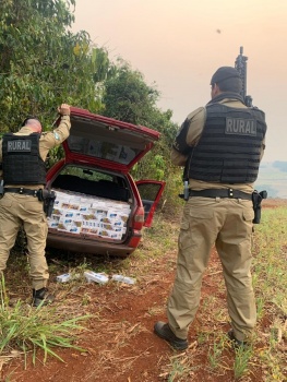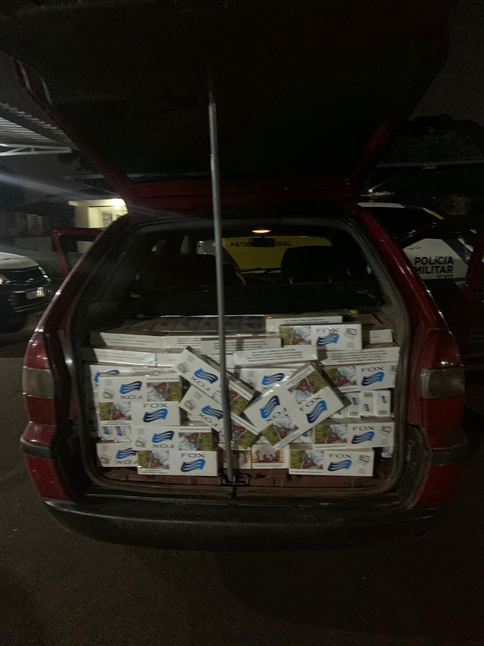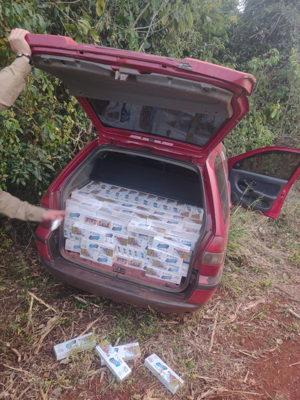 Após uma fuga por vários quilômetros, o condutor abandonou o carro em uma área rural e correu para a mata, onde foi capturado. No interior do Palio Weekend, os policiais encontraram cerca de 11 caixas de cigarros contrabandeados.