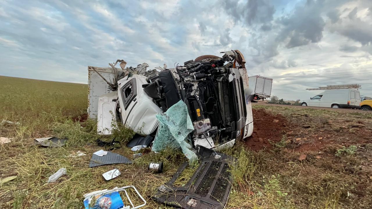 Já o motorista da carreta container foi socorrido e encaminhado para um dos hospitais do município de Palotina.