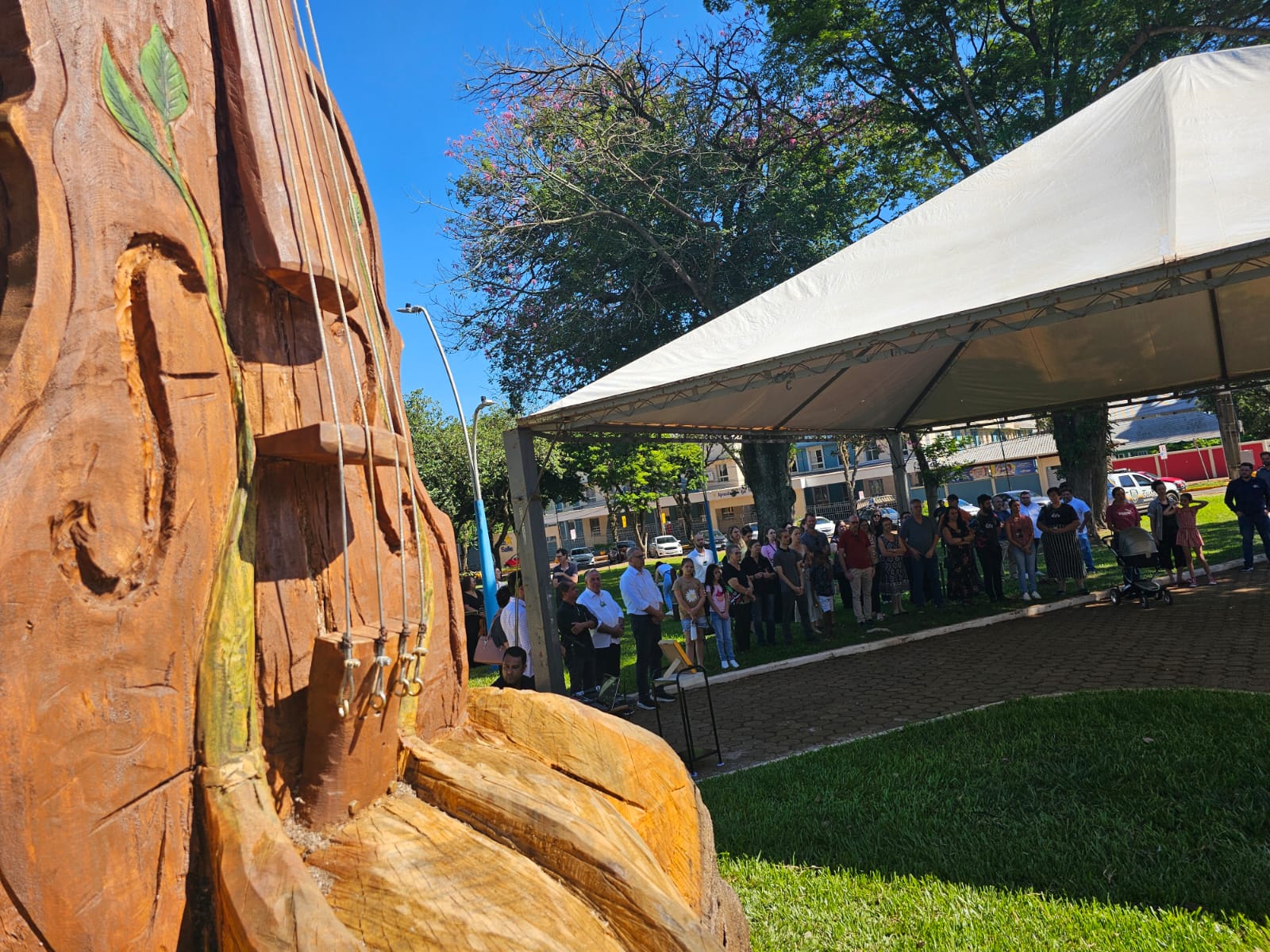 A cerimônia contou com um momento musical conduzido pelos professores da Casa da Cultura, Gianni Ambrosino e Viviane Ribeiro dos Santos. Durante o evento, foi oficialmente entregue a escultura “Violoncelo”, obra eternizada no chão da praça feita a partir do tronco de uma árvore, a única peça finalizada por Elvis antes de sua morte em dezembro de 2024.