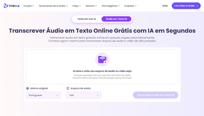 Gere Legendas Automáticas com Vidnoz Áudio em Texto