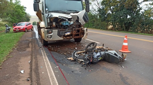 Segundo informações obtidas no local, o acidente aconteceu por volta das 13h30. O caminhoneiro trafegava com sentido a Palotina e o motociclista seguia no sentido contrário, quando acabou colidindo frontalmente.