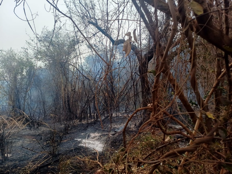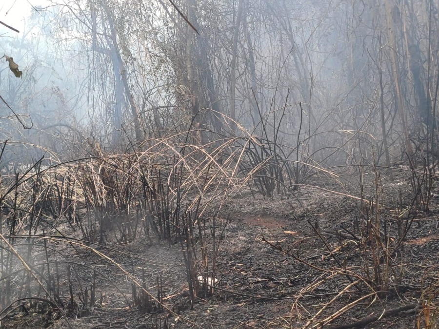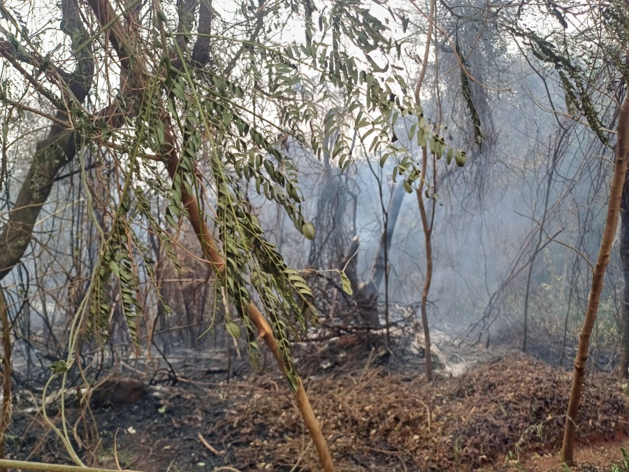 Incêndio de grandes proporções atinge área de mata na Vila Pioneiro