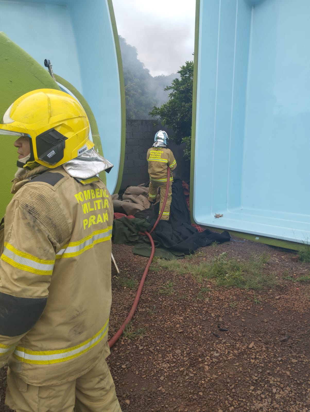 Equipes do Corpo de Bombeiros atenderam a ocorrência com o envio de um caminhão Auto Bomba Tanque e Resgate (ABTR), realizando o combate direto às chamas. O fogo teve início em uma área dos fundos do terreno onde havia materiais como tapetes e lonas, o que contribuiu para a intensidade inicial do incêndio. Após a ação rápida das equipes, as chamas foram controladas e totalmente extintas.