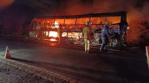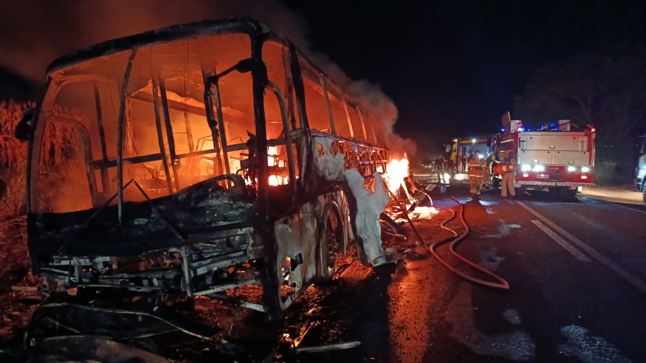 Um ônibus foi completamente destruído pelo fogo na noite desta terça-feira (03), na rodovia PR-182, rodovia que liga Toledo a Maripá-PR. O incidente ocorreu a cerca de 2 km do Aeroporto Municipal Luiz Dalcanale Filho, enquanto o veículo transportava estudantes de volta do BioPark.