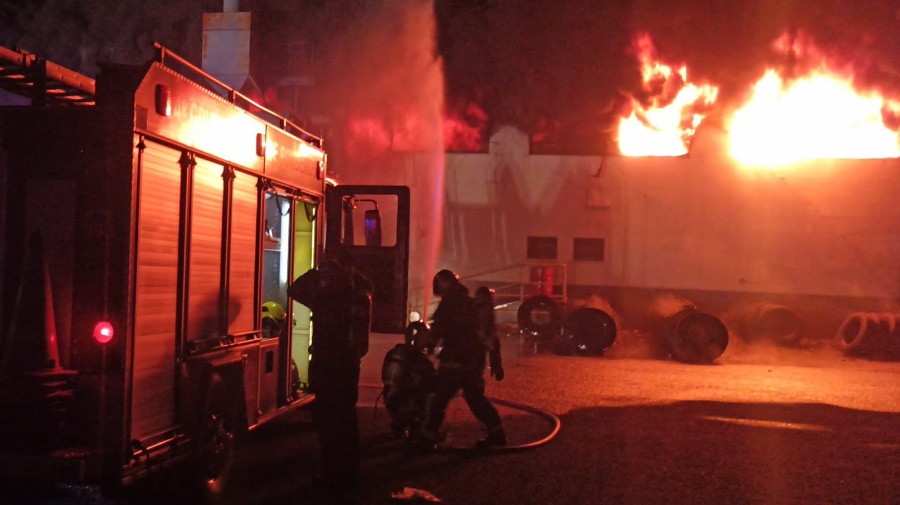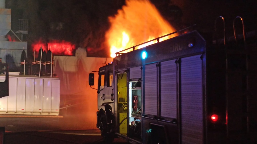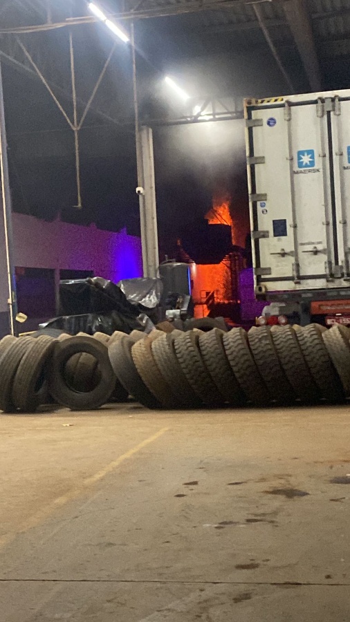Incêndio de grandes proporções atinge empresa do ramo de pneus, na rodovia PR-182, em Toledo