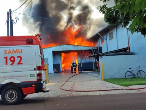 Um incêndio de grandes proporções foi registrado no meio da tarde desta quarta-feira (12). A situação ocorreu em uma fábrica de colchões localizada na Rua Ivo Heiss nas proximidades do cruzamento com a José Ayres da Silva, no Jardim Coopagro, em Toledo.