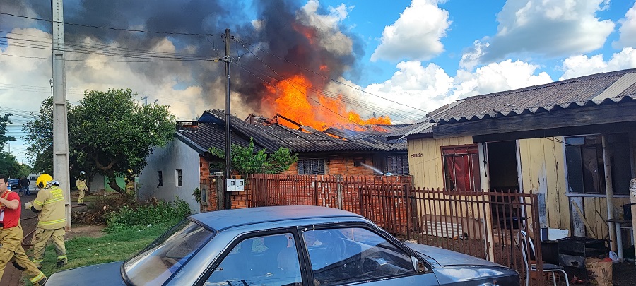 Um incêndio de grandes proporções destruiu duas residências alugadas na tarde desta sexta-feira, 08, no Jardim Panorama II, em Toledo. As casas pertencem a duas irmãs e estavam localizadas na Rua Jose Cazzanatto. Até o momento, as causas do incêndio permanecem desconhecidas.