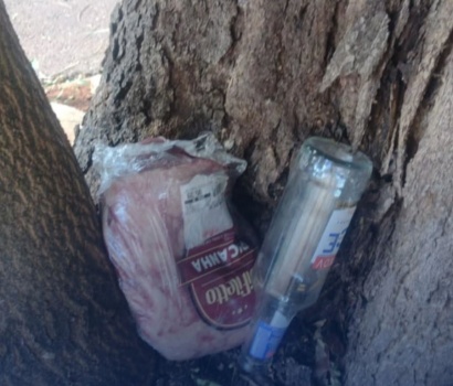 Nas proximidades do local onde foi abordado, os pacotes de carne levados do mercado foram encontrados. O segurança reconheceu o suspeito como autor do furto e da ameaça, confirmando as informações registradas pelas câmeras de vigilância.