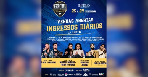 Ingressos da 43ª ExpoVel já estão disponíveis online e nos pontos oficiais! Garanta o seu antecipado aqui