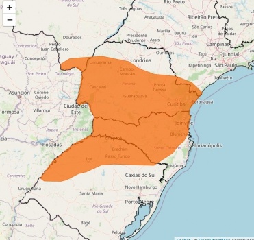 A área de cobertura do alerta abrange grande parte do estado, incluindo o Litoral do Paraná e a Região Metropolitana de Curitiba (RMC), além das regiões Centro Ocidental, Noroeste, Sudoeste, Oeste, Sudeste e Centro-Sul do Paraná.