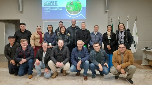 Representantes da Associação Comercial e Empresarial de Toledo (ACIT), entre eles o presidente Cristiano Dall’Oglio da Rocha e o gerente geral Marcel Sarturi, participaram no dia 1º de julho de uma reunião com a comissão organizadora do Inovameat 2025, no Sindicato Rural de Toledo.