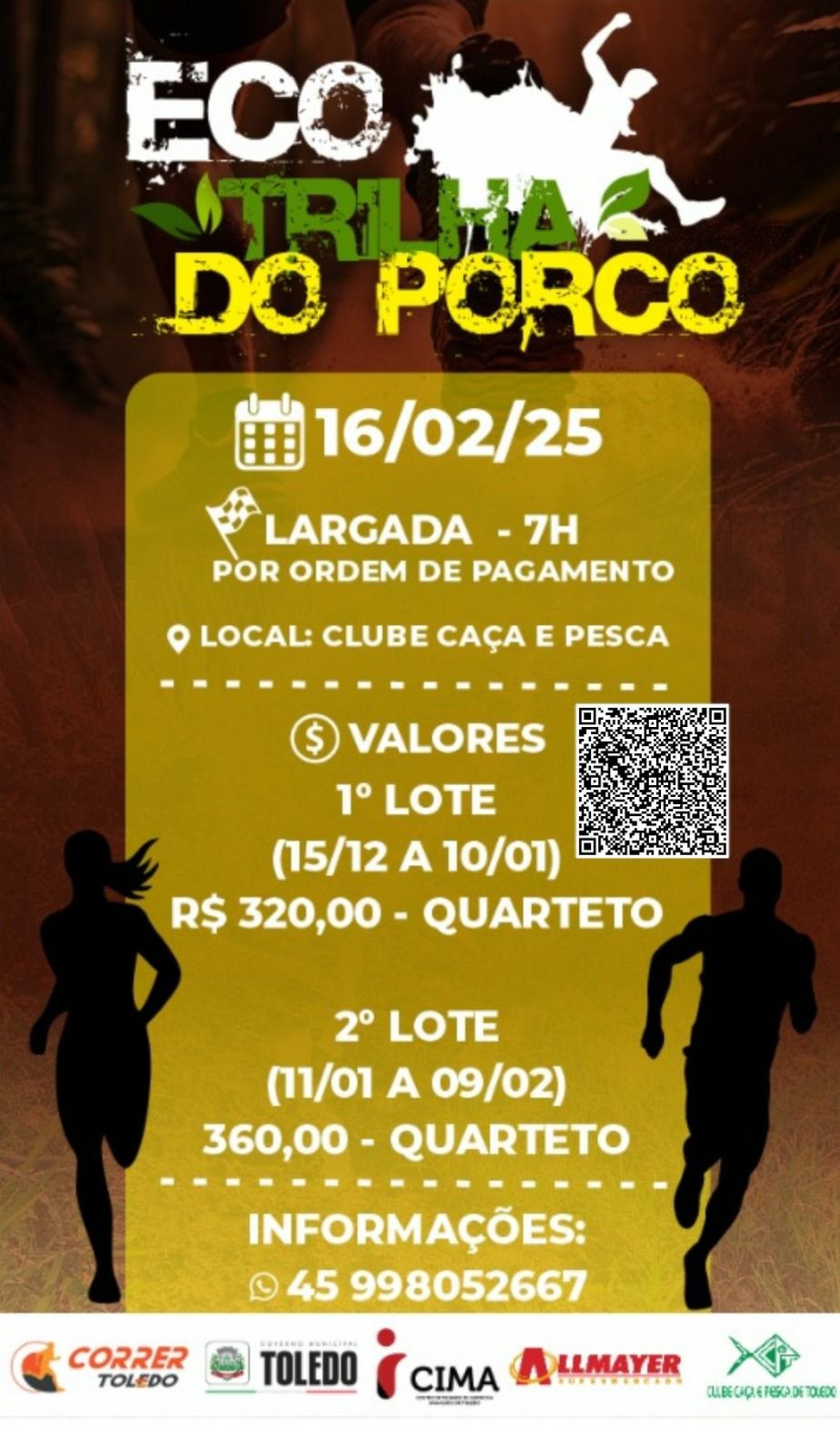 As inscrições para a Ecotrilha do Porco já estão abertas e prometem uma experiência cheia de emoção para os amantes de atividades ao ar livre. O evento, marcado para o dia 16 de fevereiro de 2025, terá sua largada às 07h00, por ordem de pagamento.
