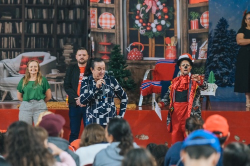 A programação contemplou recreação infantil para as crianças, seguido do cerimonial de abertura e apresentação da peça teatral Laços de Natal, da Companhia de Teatro Os Amadores.