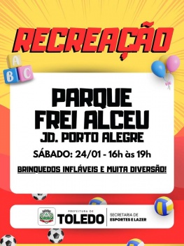Para aproveitar as férias, mais uma edição do RecreAção será realizada neste sábado (24) no Jardim Porto Alegre. A ação é organizada pela Secretaria Municipal de Esportes e Lazer (Smel) e será realizada no Parque Frei Alceu das 16h00 às 19h00. A participação é gratuita e aberta a toda a população, que pode trazer cadeiras e aproveitar a tarde.