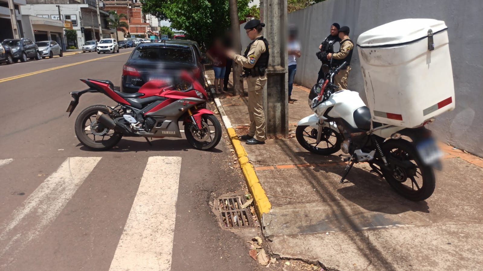 Uma colisão envolvendo duas motocicletas foi registrada no início da tarde desta quarta-feira (08), no Centro de Toledo. O acidente envolveu uma motocicleta Honda CG Cargo 160 e uma motocicleta Yamaha R3 300. A batida ocorreu no cruzamento das ruas Santos Dumont e Haroldo Hamilton.