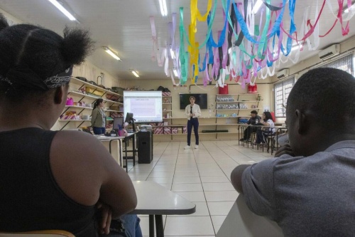 Na atividade realizada no Cras IV, que funciona anexo à Unidade Social do São Francisco, a assistente social Patrícia Calheiro Lechinoski e a psicóloga Amanda Talita Maziero conduziram as conversas com os adolescentes. “É um bate-papo que inicia com a nossa equipe falando rapidamente sobre o conteúdo relacionado aos direitos da pessoa idosa e depois abrimos o espaço para perguntas”, explica Patrícia. “Vejo essas rodas de conversa como uma oportunidade de sabermos o nível de conhecimento dos adolescentes sobre o tema e orientá-los a como denunciar caso eles presenciem uma situação de violência contra alguma pessoa idosa”, complementa Amanda.