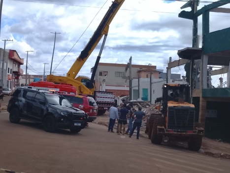 Com o desabamento, a área foi isolada para evitar novos riscos. Técnicos devem vistoriar o local antes de qualquer retomada do trabalho.